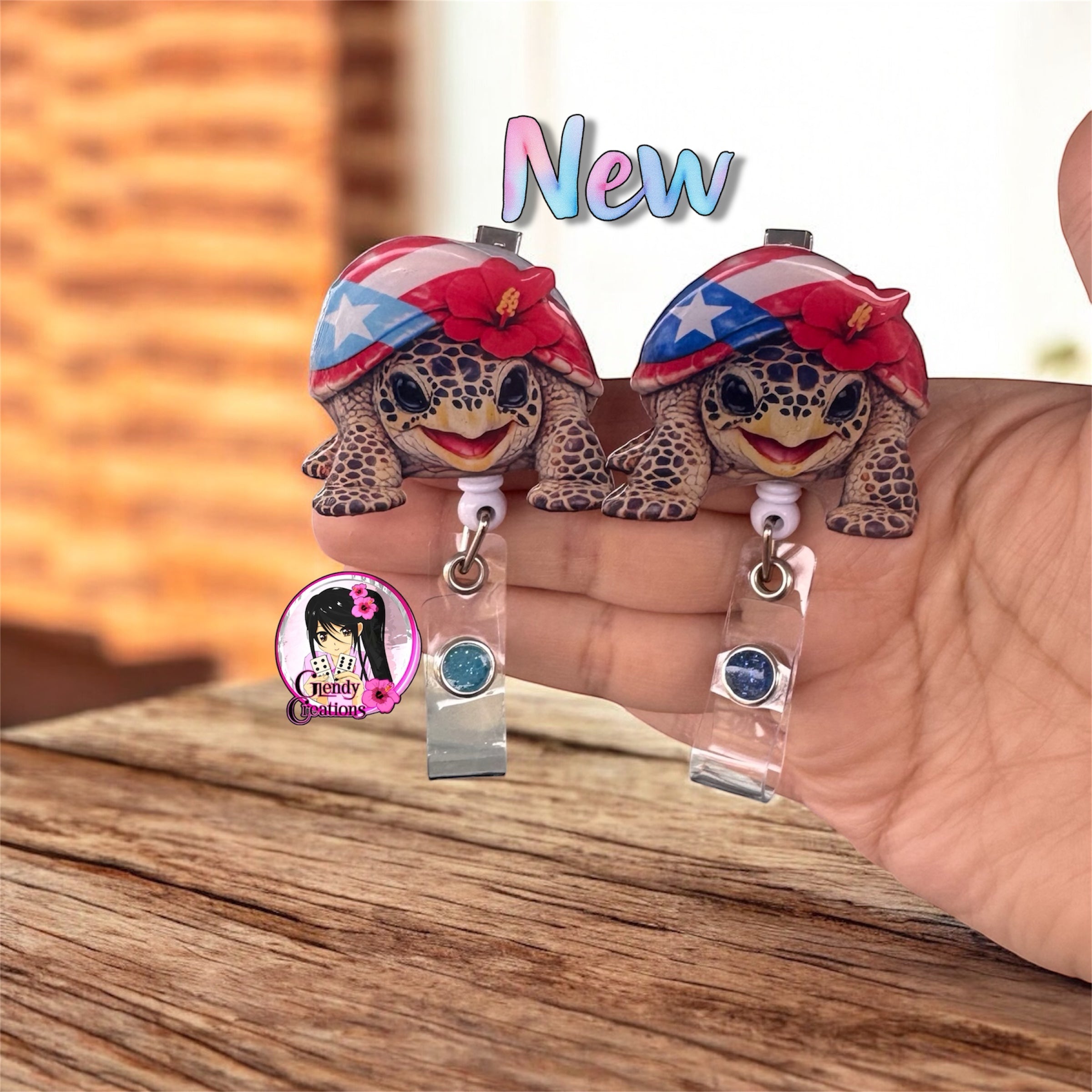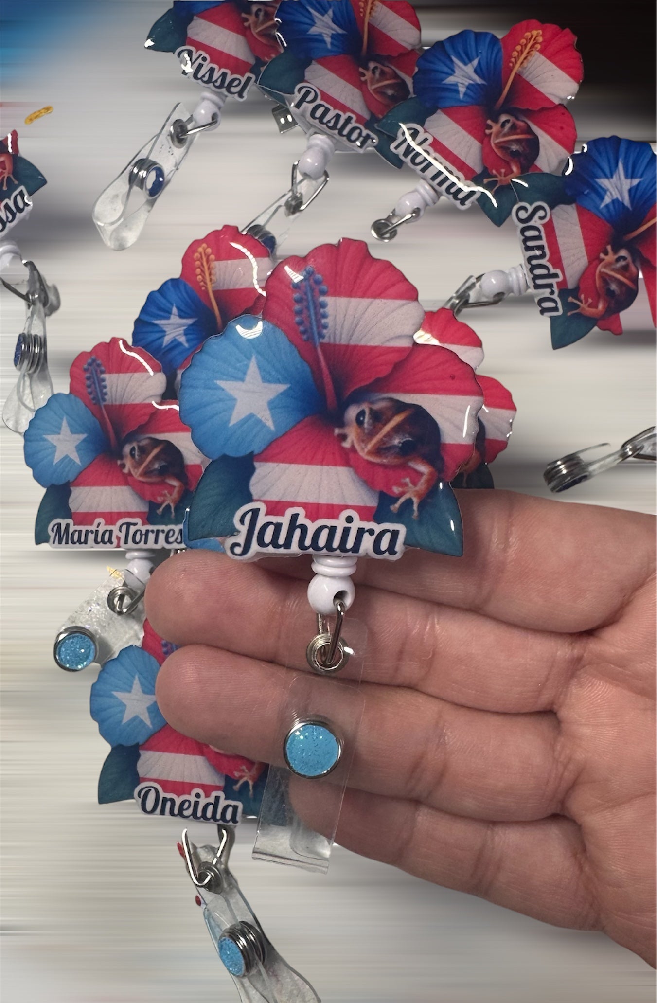 Badge Reels with Hibiscus Flower and Coquí Design”/Id Badge