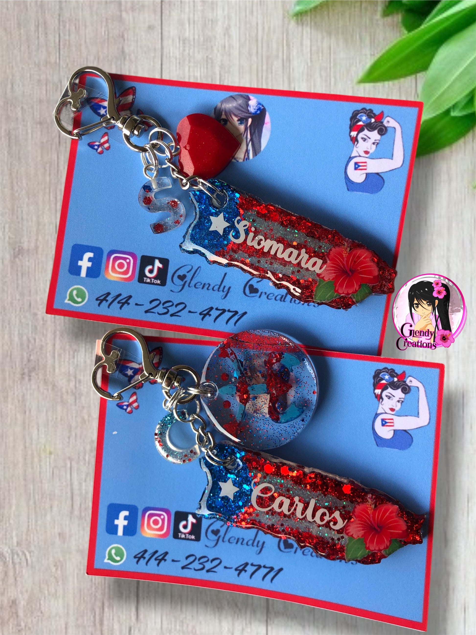 💗"Carry your love for Puerto Rico with you wherever you go with our 2 Puerto Rico map shaped keychains. Each keychain includes a customizable name and initial, making it the perfect gift for any proud Puerto Rican."