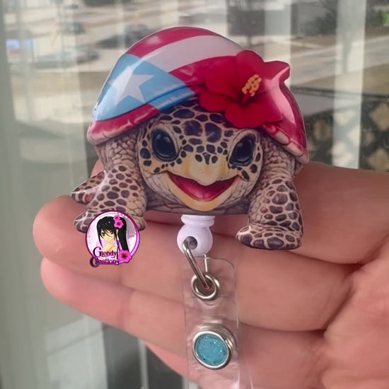 Badge ID inspirado en la tortuga carey de Puerto Rico, símbolo de resistencia, protección y orgullo cultural. Este diseño representa la belleza del mar Caribe y la identidad boricua, combinando los colores de la bandera con el estilo elegante del caparazón de la tortuga carey. Ideal para quienes desean portar un accesorio único que refleje amor por la naturaleza, la herencia puertorriqueña y la conservación marina.